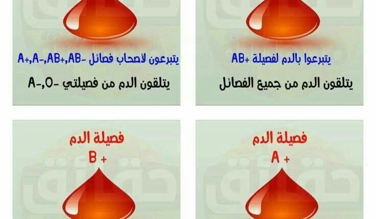 وبذلك تتكون ثماني فصائل دم شائعة مثل A+، A-، B+، B-، O+، O-، AB+، AB-.