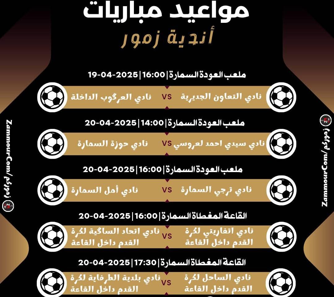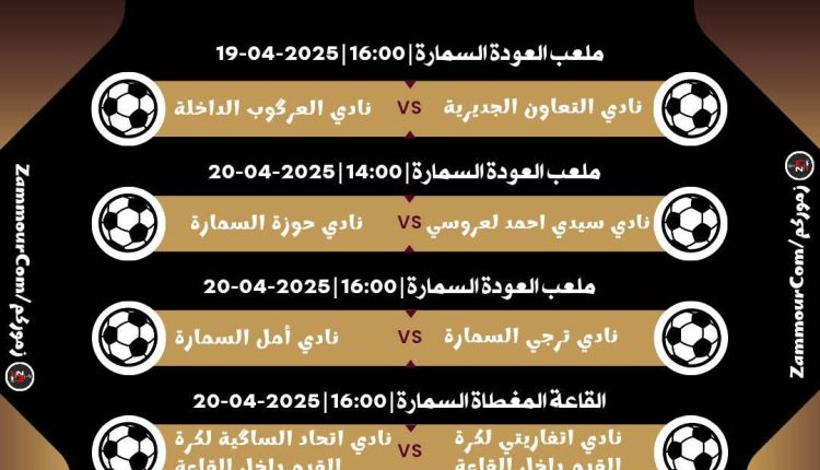 📌 نادي سيدي أحمد العروسي يستقبل نادي حوزة السمارة يوم الأحد على الساعة 14:00 بالملعب البلدي العودة .