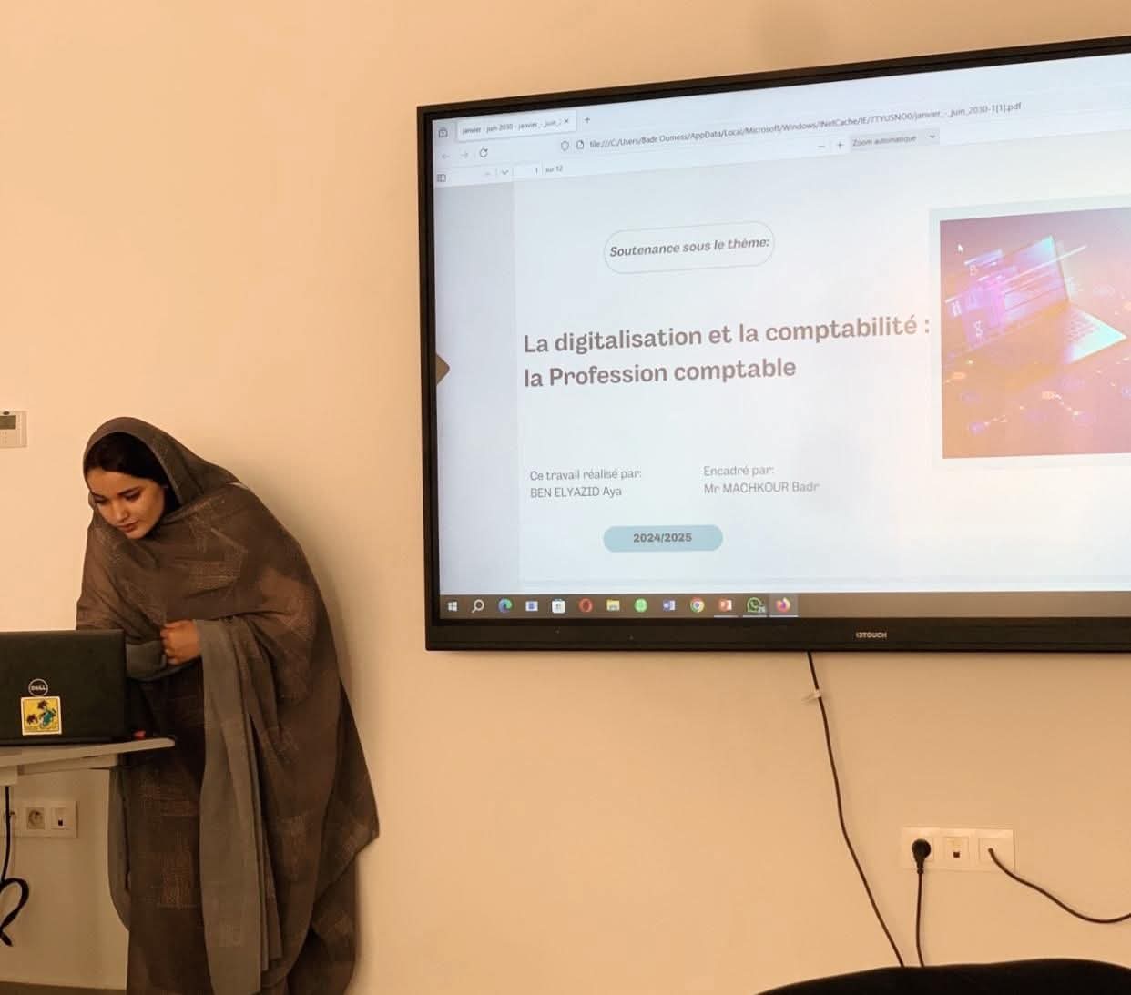 وحصولها على نقطة مشرفة 17.00 في بحث تخرج تحت عنوان: la digitalisation et la comptabilité :la Profession Comptable