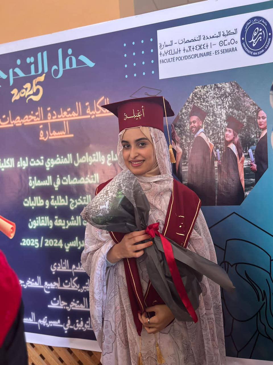 لا يسعنا في جريدة زموركم إلا نُبارك للطالبة “اغيلة بنفوندو” بمناسبة حصولها على شهادة الإجازة في مسلك العلوم الشرعية وقضايا العصر – شعبة القضاء والتوثيق من الكلية متعددة التخصصات بالسمارة بميزة مستحسن.