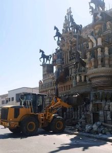 صباح اليوم أقدمت السلطات المحلية بمقاطعة لمريسة في مدينة سلا على تنفيذ قرار هدم فيلا غير قانونية تقع بالشريط الساحلي، تُعرف باسم “فيلا السبوعة”، المعروفة بطابعها الغريب وامتلائها بتماثيل حيوانات، في محاولة من مالكها لتحويلها إلى متحف خاص.