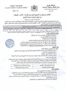 ✓ حافظا لكتاب الله على الأقل 30 حزبا بالنسبة للمترشحين لشهادة التأهيل في الأذان