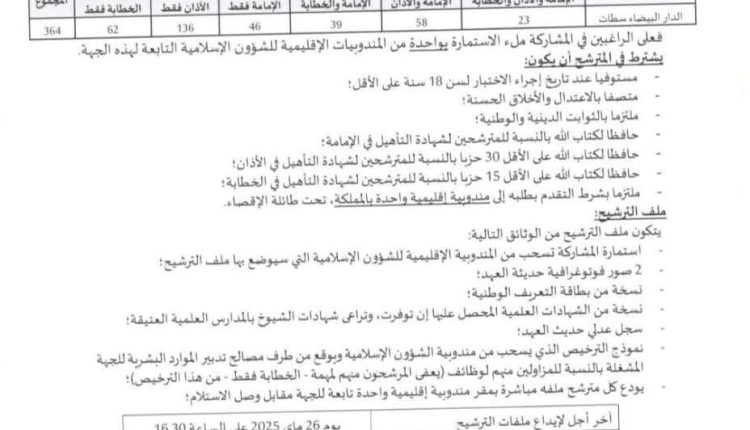 ✅ التســجيـــل مفتــوح في شغل مهام الإمــامة – الأذان – الخطابة بمختلف جهات المغرب 🇲🇦 ” اكثر من 1850 منصب ” .