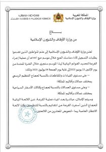 شؤون دينية؛ بلاغ من وزارة الأوقاف والشؤون الإسلامية. شؤون دينية آخر تحديث سبتمبر 8, 2025 شارك شارك FacebookTwitterWhatsAppPinterestالبريد الإلكترونيطباعة