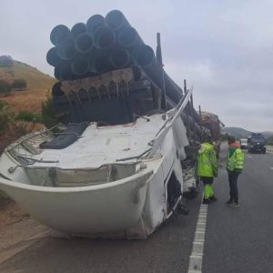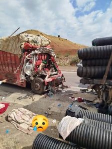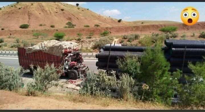 🚧 حادثة سير خطيرة بين شاحنتين على الطريق السيار الرابط بين مدينتي الخميسات ومكناس وبالضبط على مستوى منحدر واد بهت.