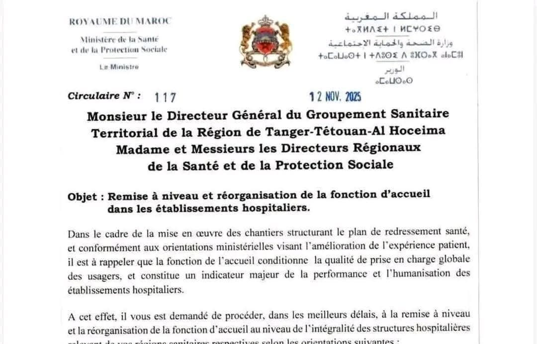 ويأتي هذا الإجراء في إطار تنظيم وظيفة الاستقبال، من خلال حصر مهام حراس الأمن في حفظ النظام والأمن فقط، وترك مهام الإرشاد والتوجيه للأطر الإدارية والطبية المختصة، ضماناً لجودة الخدمات وتفادياً لأي تداخل في الصلاحيات.