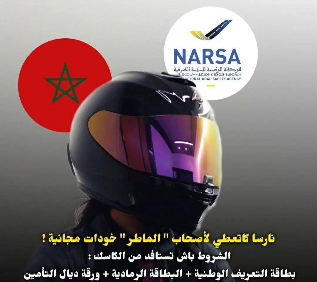 أطلقت الوكالة الوطنية للسلامة الطرقية (نارسا) مبادرة جديدة تهدف إلى تعزيز السلامة على الطرق، عبر توفير خوذات مجانية لأصحاب الدراجات النارية.