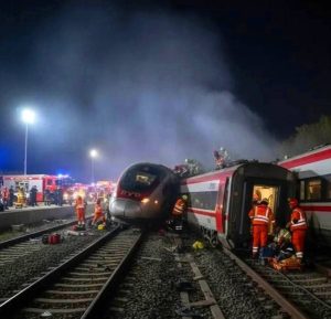 حيث خرج قطاران فائقَا السرعة عن سكتهما واصطدما ببعضهما البعض، ما أدى إلى سقوط عدد كبير من الضحايا.
